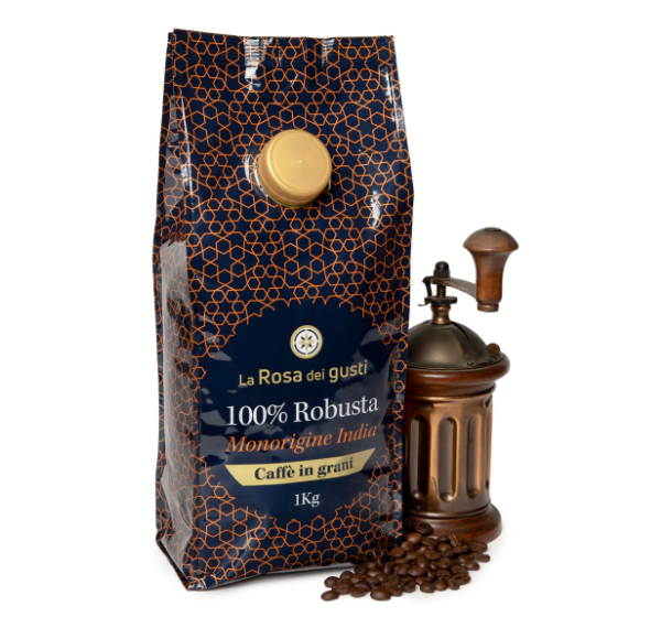 La varietà Robusta indiana dalla tostatura media, tra le più pregiate, si presenta al palato con un corpo intenso e cremoso. Il profumo di pepe nero e chiodi di garofano ne esaltano il carattere, mentre note di pane tostato, cioccolato e nocciola completano l'esperienza. Il pack innovativo con tappo salva freschezza assicura un aroma sempre pieno.
